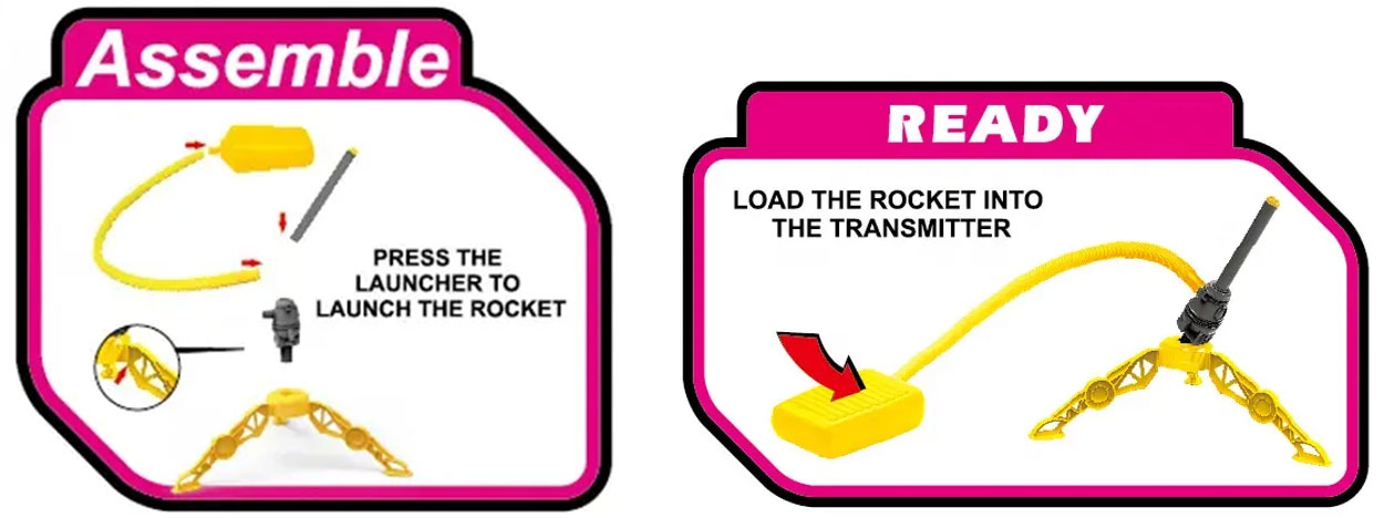 Сглобете стойката и прикачете специалния педал! Играчката е готова за забавления - просто натиснете силно педала и гледайте колко високо ще се изстреля ракетата. Включени са 6 ракети с различен дизайн, сред които и светещи! Състезавайте се кой ще изстреля ракета най-високо или най-далеч - регулирайте ъгъла на стойката, за да подобрите резултатите си! Засилете се, скочете, изстреляйте!