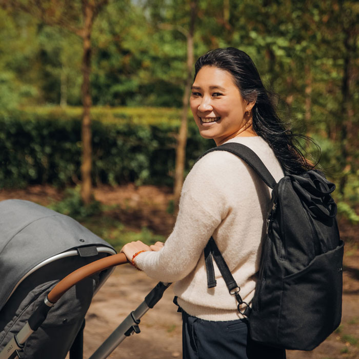 Моделът разполага с изолирано отделение, за да поддържате бебешките шишета студени или топли, включена е и подложка за повиване. И не на последно място, външната тъкан е направена от рециклирани пластмасови бутилки.