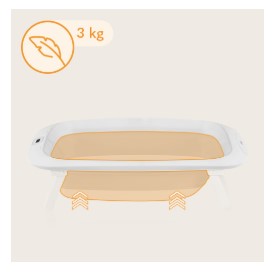 Тази вана за новородени и малки деца се сгъва напълно плоско до компактни размери. Перфектен избор за родители, които търсят практично решение както за ежедневна употреба, така и за пътувания.