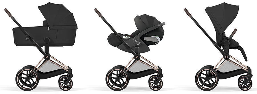 Възможност за надграждане до система за пътуване, която ви позволява да адаптирате Priam спрямо нуждите на вашето дете – от уютния кош за новородено Priam Fold Lux Carry Cot, през столче за кола за бебе, до седалка с възможност за обръщане към родителя или по посока на движението за пораснали деца.