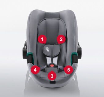 Britax Römer вярват, че 5-точковият колан е най-сигурният начин да обезопасите детето си в столче за кола, защото го държи безопасно и стегнато в защитния корпус на столчето. В случай на сблъсък коланът разпределя силите на удара в 5 точки, две на раменете, две на бедрата и една, където коланът се закопчава между краката. Това помага да защитите детето си от всички посоки на удар.