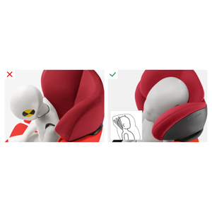 Патентованата три-позиционна облегалка за главата гарантира оптимална защита в случай на страничен удар. Тази революционна технология измества точката на равновесие на главата на детето леко назад и го предпазва от падане напред, когато детето спи. В случай на сблъсък главата на детето остава в зоната на безопасност на седалката, като това гарантира оптимална защита. Освен това, нашата патентована 3-та позиционна облегалка за главата предлага по-удобна поза за спане за безопасно и спокойно пътуване.