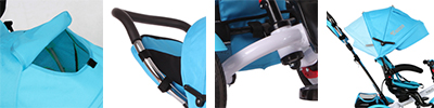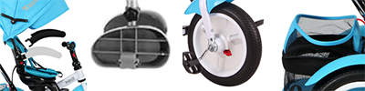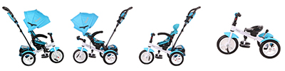 | Характеристики триколки | Трансформираща се, Въртяща седалка, Регулиране на облегалката, С родителски контрол, Със заключване на педалите, Със сенник, Със степенка за крачета, С предпазен борд, С предпазен колан, С багажник, С тапицерия |