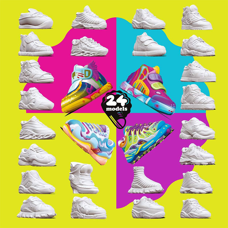 Колекцията включва общо 24 модела маратонки за колекциониране и персонализиране. Създайте своя собствена колекция от персонализирани маратонки Sneak'artz!