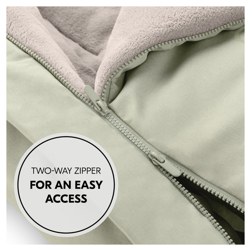 За по-лесен достъп можете напълно да отворите двупосочния цип, а когато детето ви е с кални обувки, можете да отворите само долната част, така че зимният чувал да остане чист