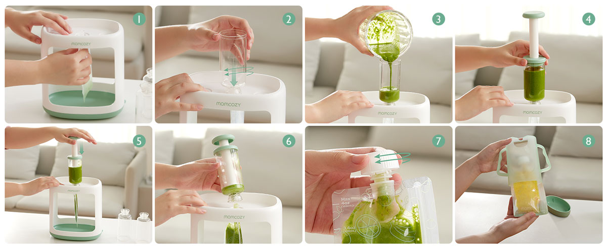 Комбинира пълнене, притискане и дозиране в едно устройство. Без излишни инструменти и без бъркотия – само бърза и лесна подготовка за заети родители.