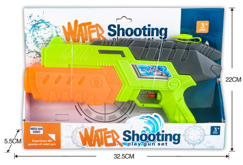 Воден пистолет със забавен пъстроцветен дизайн, подходящ за игри на двора, в парка или на плажа.