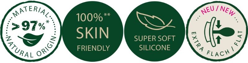 Поради тънката и лека форма на основата на залъгалката, тя има големи вентилационни отвори, чрез които достига много въздух за чувствителната бебешка кожа и това предотвратява обриви и кожни раздразнения и я прави особено удобна за носене.