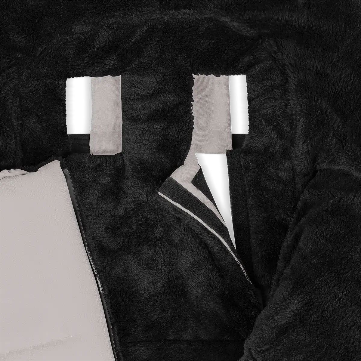 Неплъзгащият се гръб с антислип подложки не позволява чувалчето да се изхлузва, дори когато детето се движи много. Еластичната лента в горната част улеснява закрепването към облегалката и предотвратява изместването.