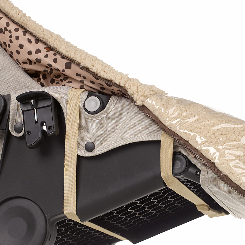 Заема формата на седалката на количката и е снабден с 2 задни ластика в долната част за по-добро закрепване.